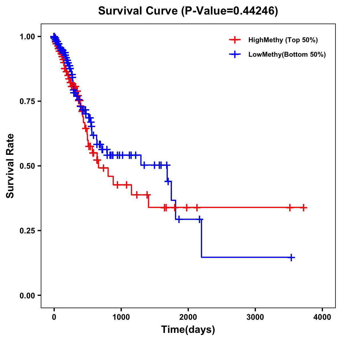 | Survival Curve of Stomach Cancer of Expression | Survival Curve of Stomach Cancer of Methylation | ||