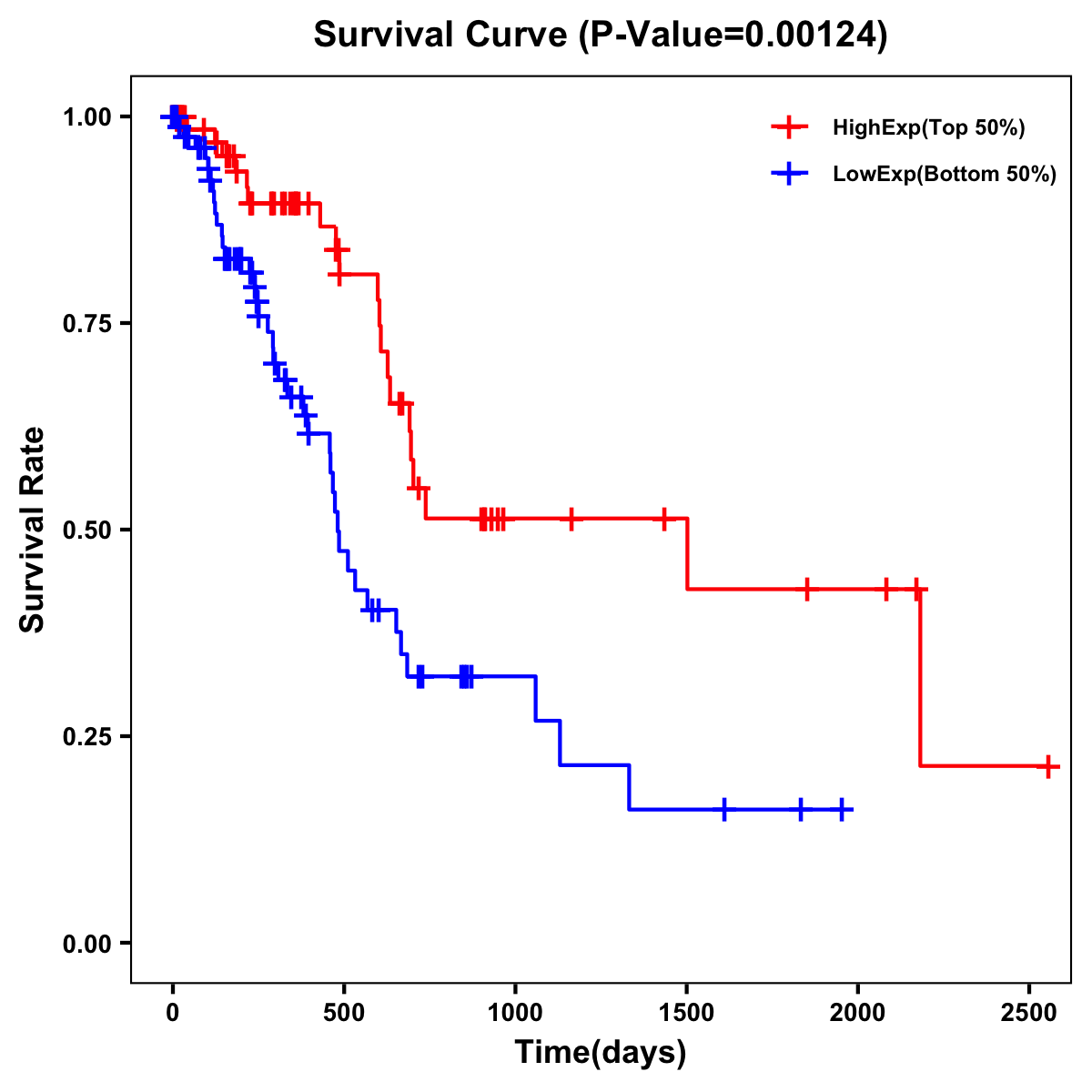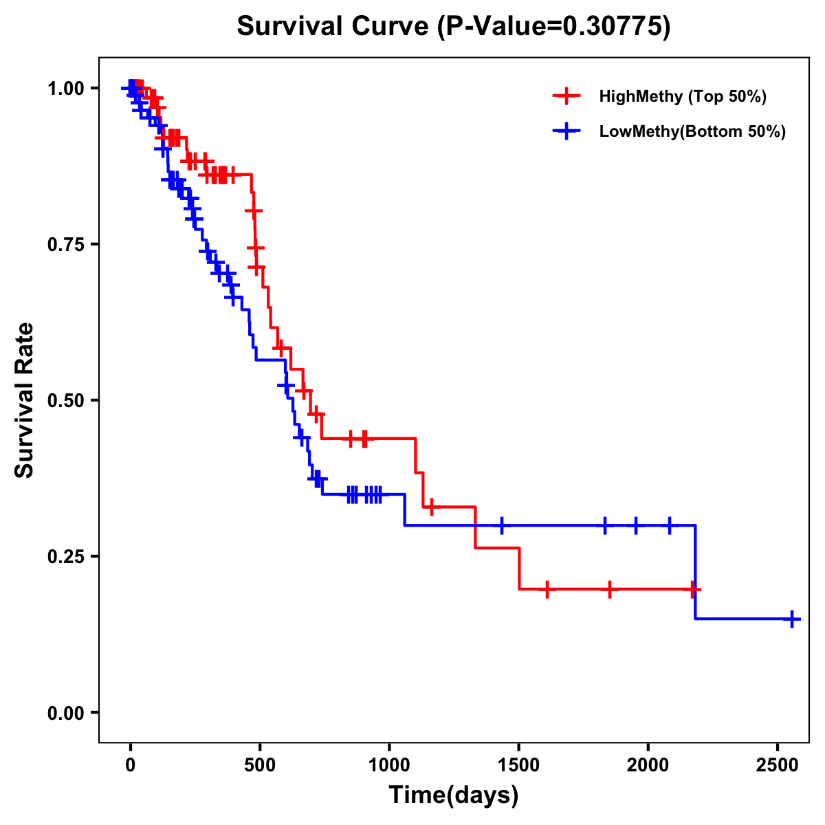 | Survival Curve of Pancreatic Cancer of Expression | Survival Curve of Pancreatic Cancer of Methylation | ||