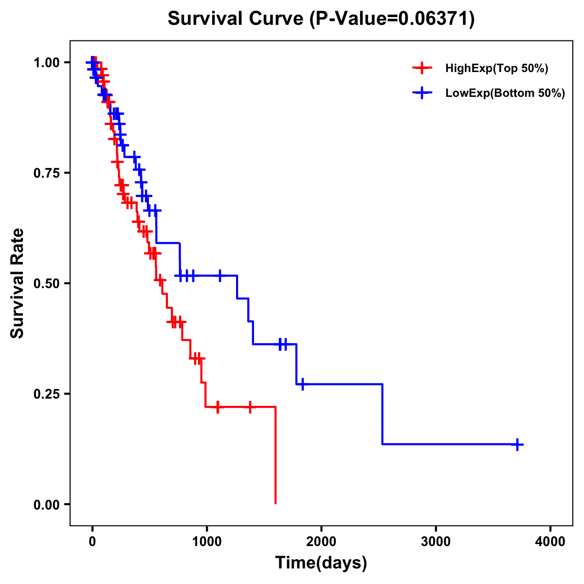 | Survival Curve of Esophagus Cancer of Expression | Survival Curve of Esophagus Cancer of Methylation | ||