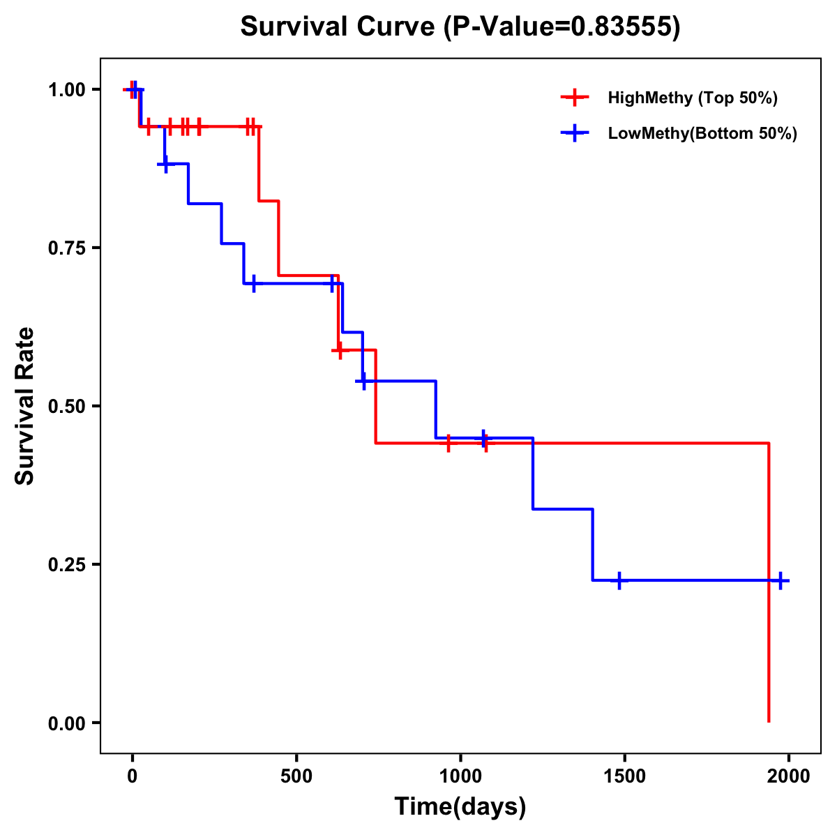 | Survival Curve of Biliary tract Cancer of Expression | Survival Curve of Biliary tract Cancer of Methylation | ||