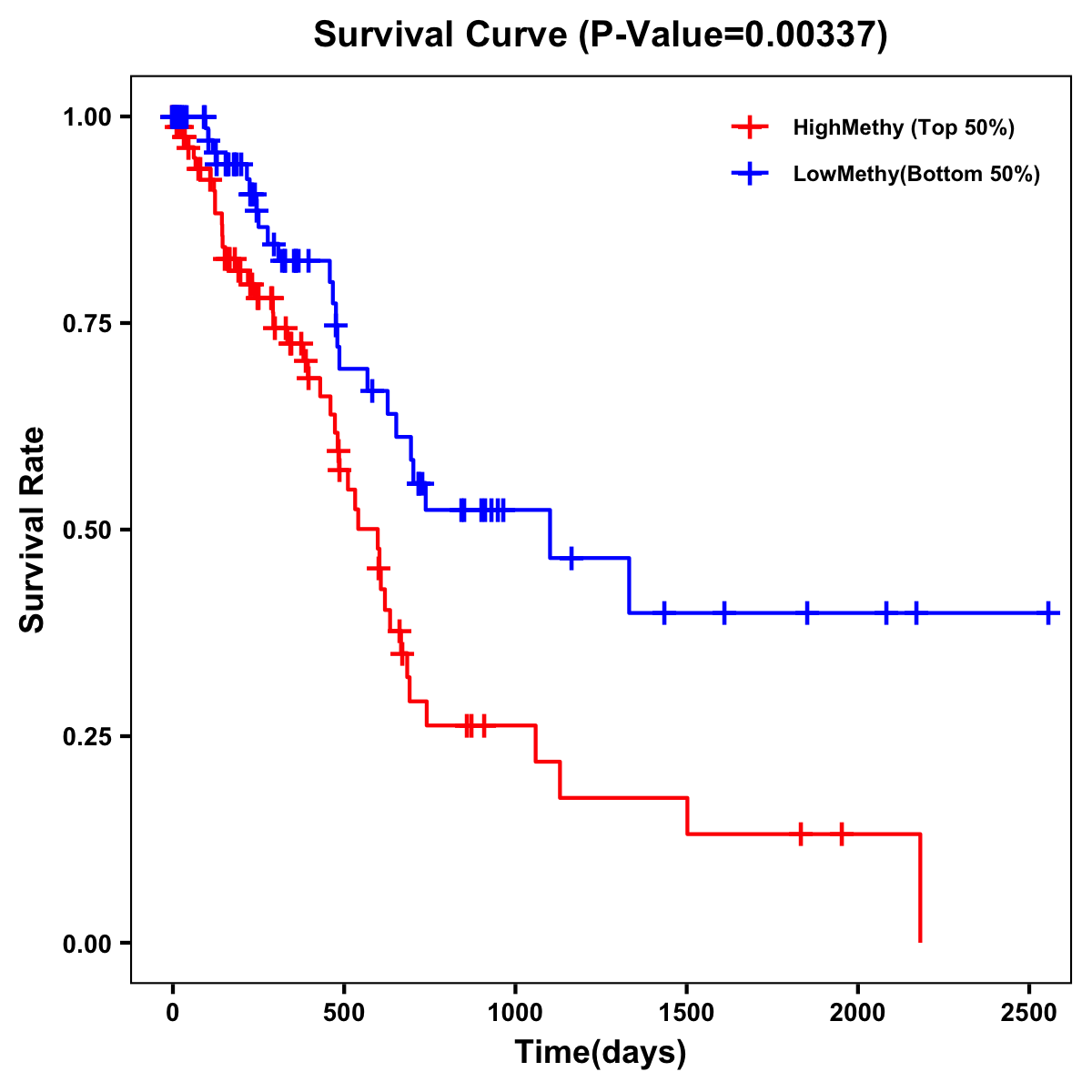 | Survival Curve of Pancreatic Cancer of Expression | Survival Curve of Pancreatic Cancer of Methylation | ||