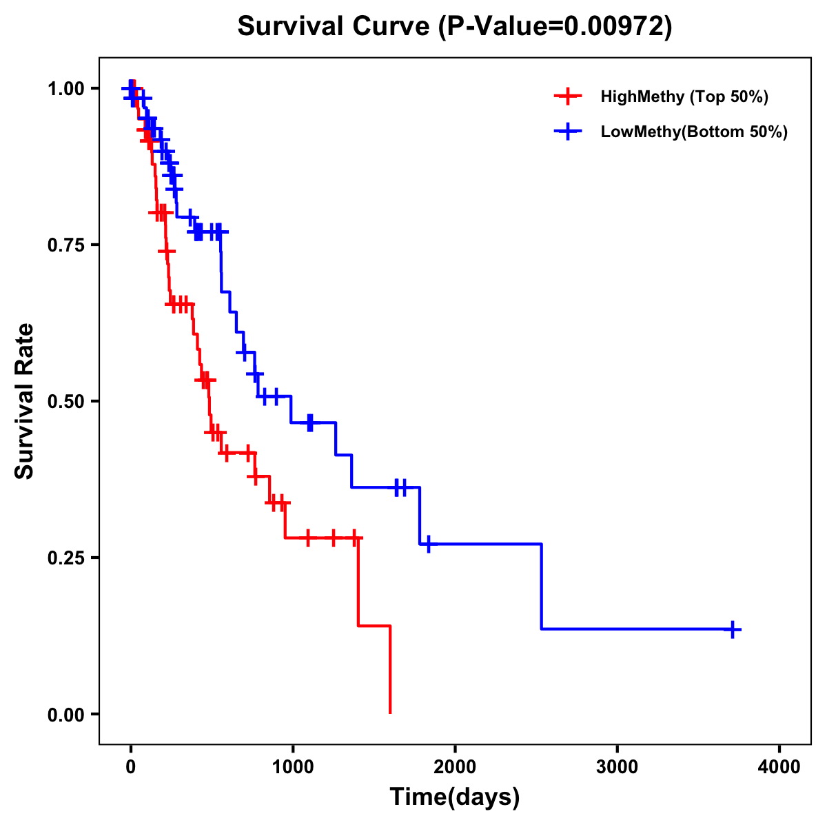 | Survival Curve of Esophagus Cancer of Expression | Survival Curve of Esophagus Cancer of Methylation | ||