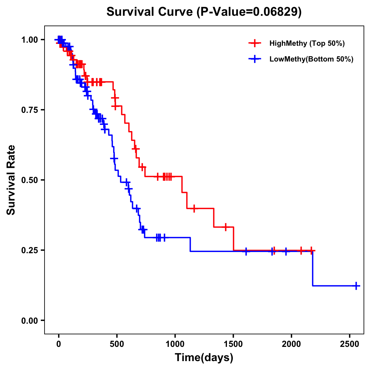 | Survival Curve of Pancreatic Cancer of Expression | Survival Curve of Pancreatic Cancer of Methylation | ||