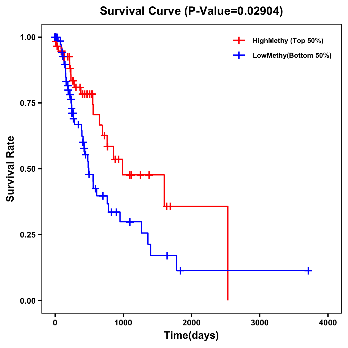 | Survival Curve of Esophagus Cancer of Expression | Survival Curve of Esophagus Cancer of Methylation | ||