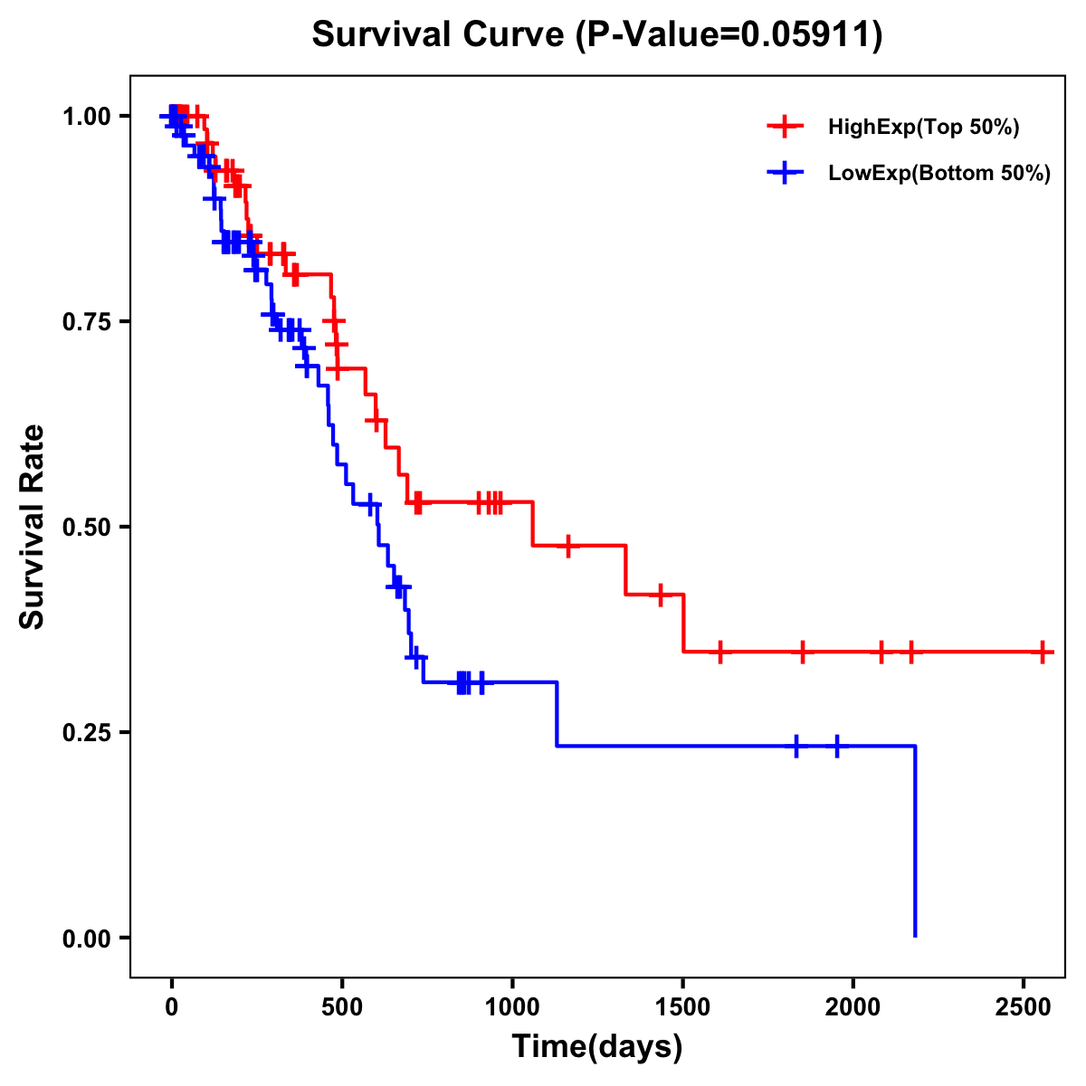 | Survival Curve of Pancreatic Cancer of Expression | Survival Curve of Pancreatic Cancer of Methylation | ||