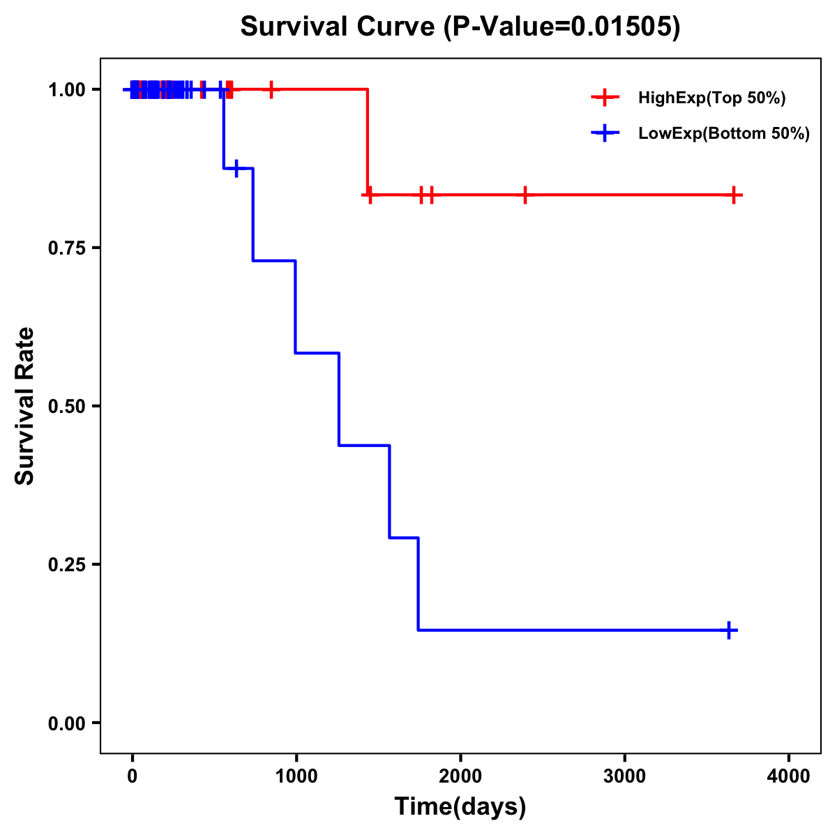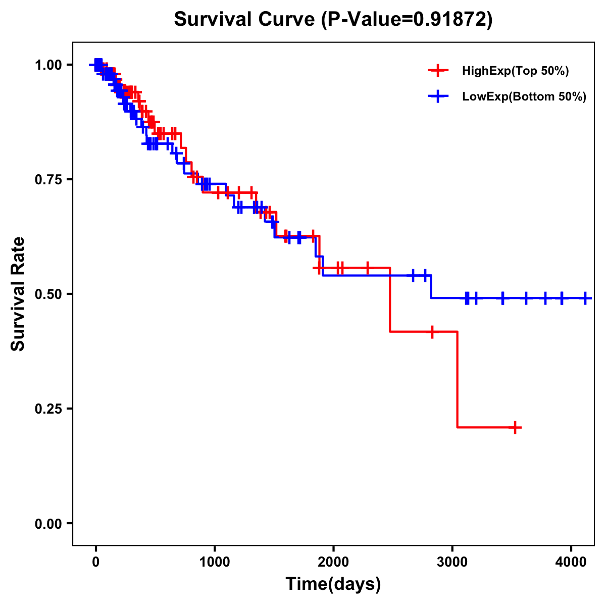 | Survival Curve of Colon Cancer on Expression Level |