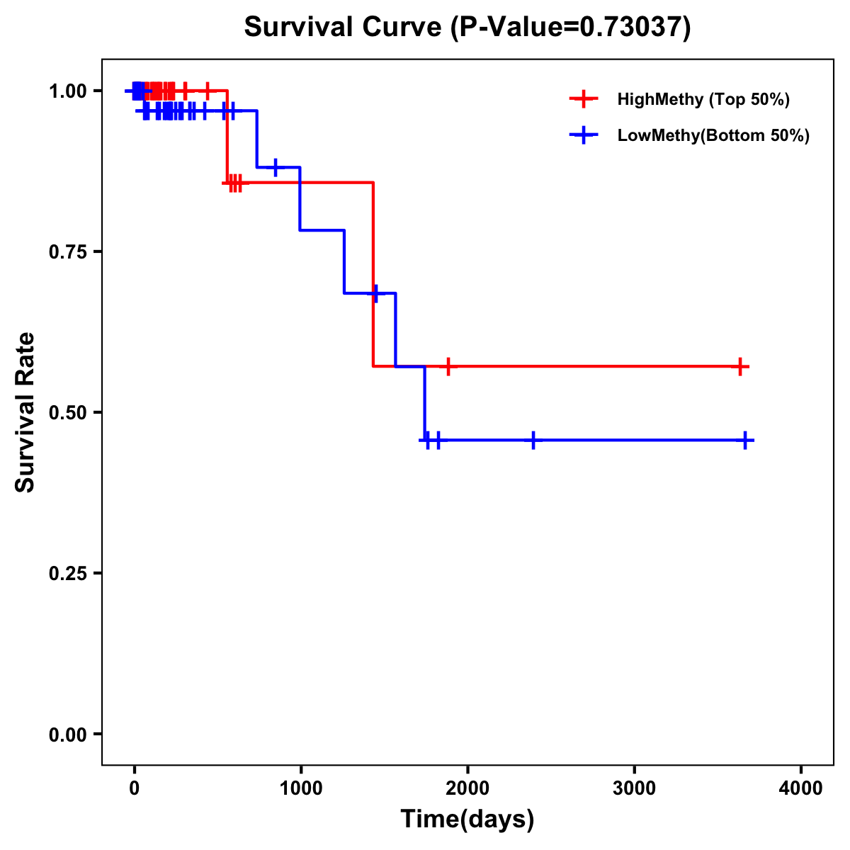 | Survival Curve of Colon Cancer on Methylation Level |