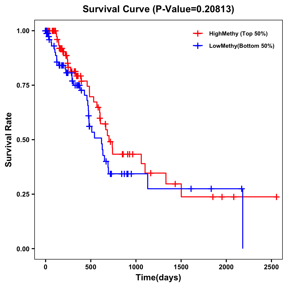| Survival Curve of Pancreatic Cancer of Expression | Survival Curve of Pancreatic Cancer of Methylation | ||