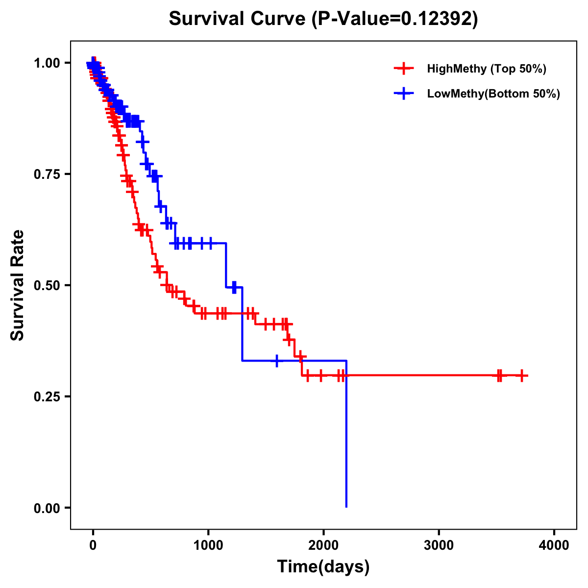 | Survival Curve of Stomach Cancer of Expression | Survival Curve of Stomach Cancer of Methylation | ||