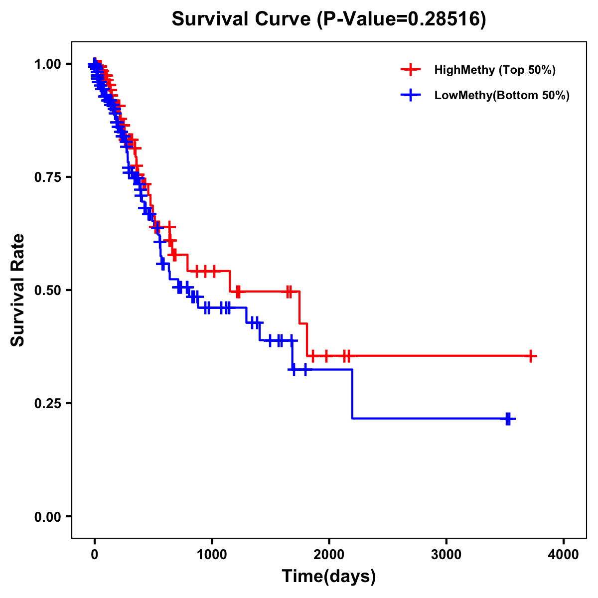 | Survival Curve of Stomach Cancer of Expression | Survival Curve of Stomach Cancer of Methylation | ||
