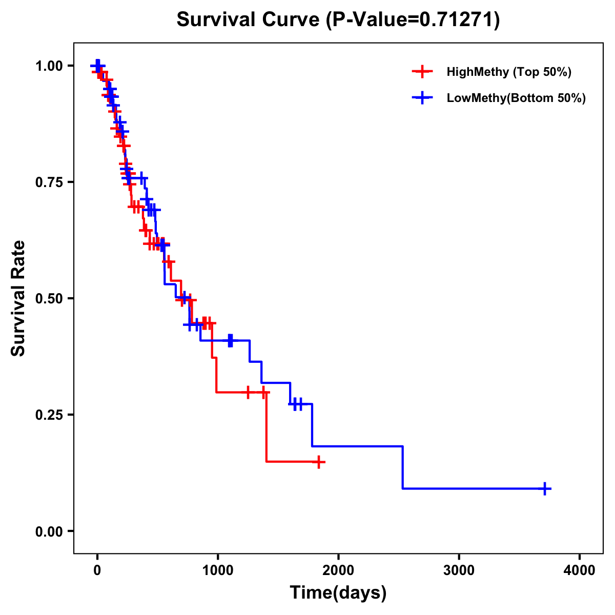 | Survival Curve of Esophagus Cancer of Expression | Survival Curve of Esophagus Cancer of Methylation | ||