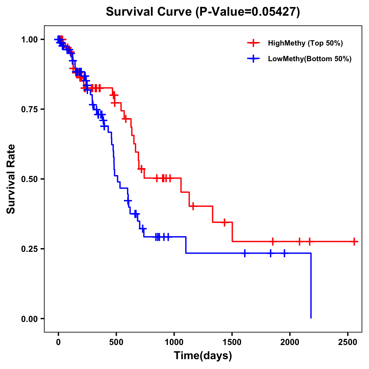 | Survival Curve of Pancreatic Cancer of Expression | Survival Curve of Pancreatic Cancer of Methylation | ||