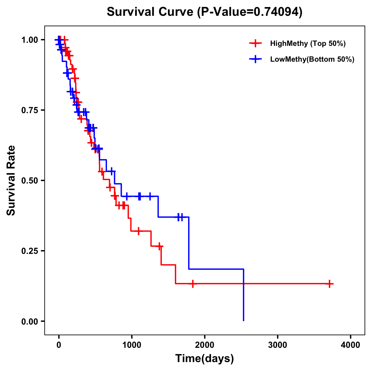 | Survival Curve of Esophagus Cancer of Expression | Survival Curve of Esophagus Cancer of Methylation | ||