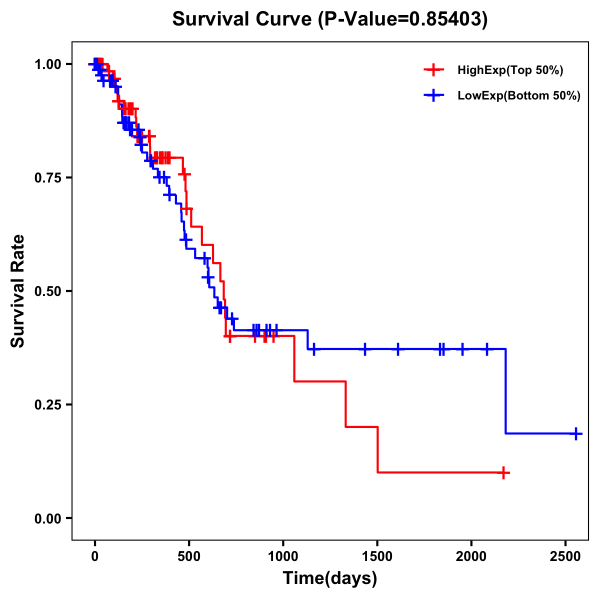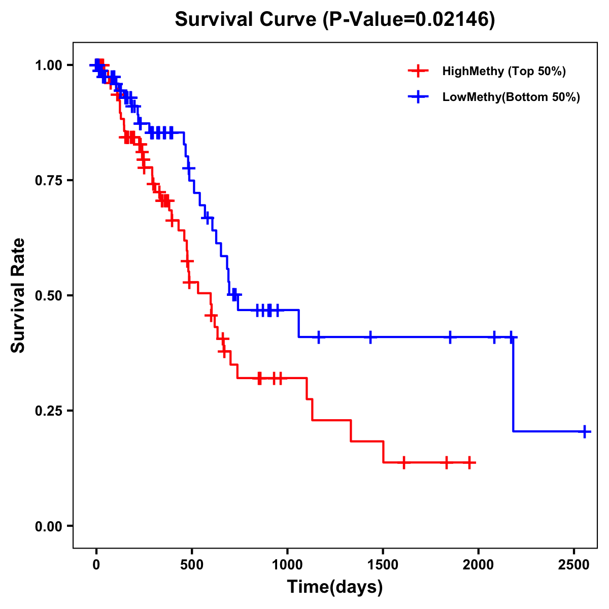 | Survival Curve of Pancreatic Cancer of Expression | Survival Curve of Pancreatic Cancer of Methylation | ||