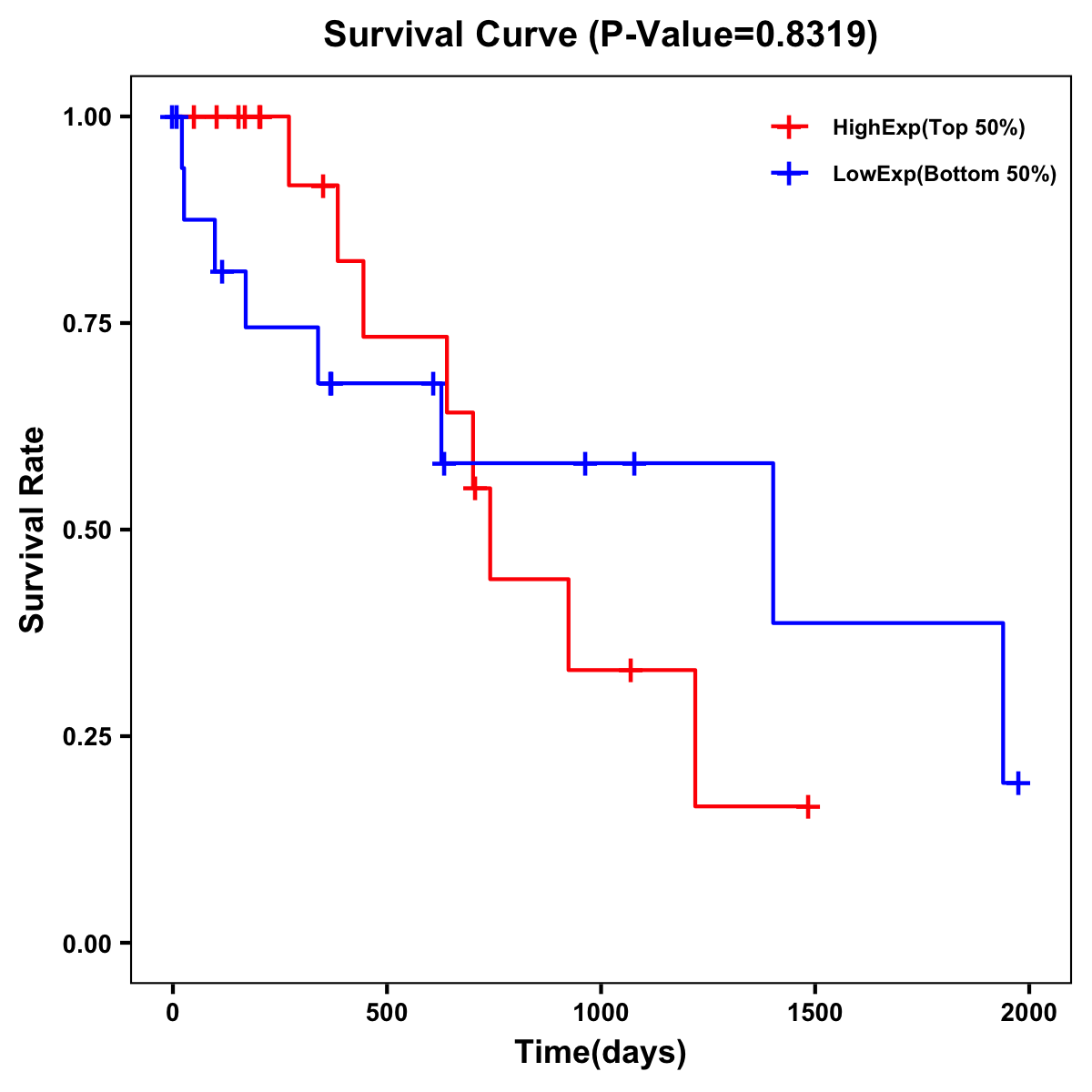 | Survival Curve of Biliary tract Cancer of Expression | Survival Curve of Biliary tract Cancer of Methylation | ||