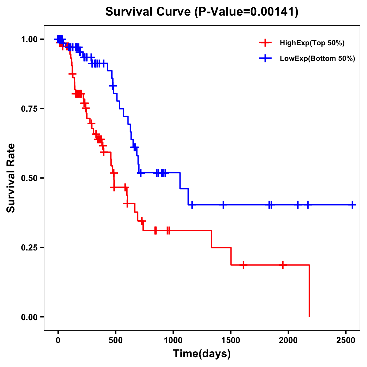 | Survival Curve of Pancreatic Cancer of Expression | Survival Curve of Pancreatic Cancer of Methylation | ||