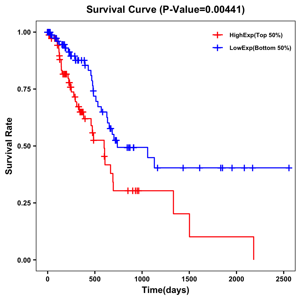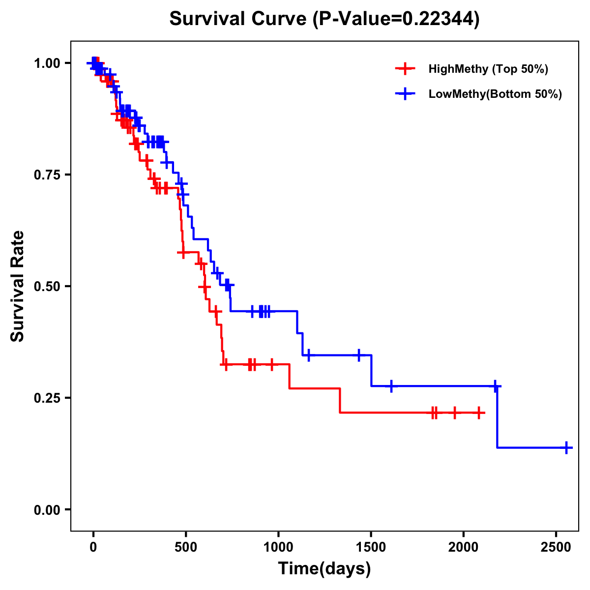 | Survival Curve of Pancreatic Cancer of Expression | Survival Curve of Pancreatic Cancer of Methylation | ||