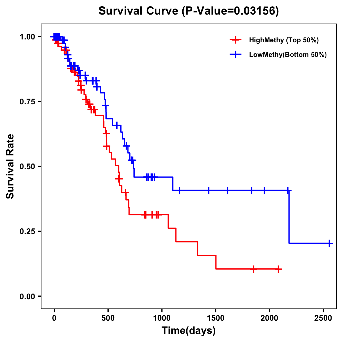 | Survival Curve of Pancreatic Cancer of Expression | Survival Curve of Pancreatic Cancer of Methylation | ||