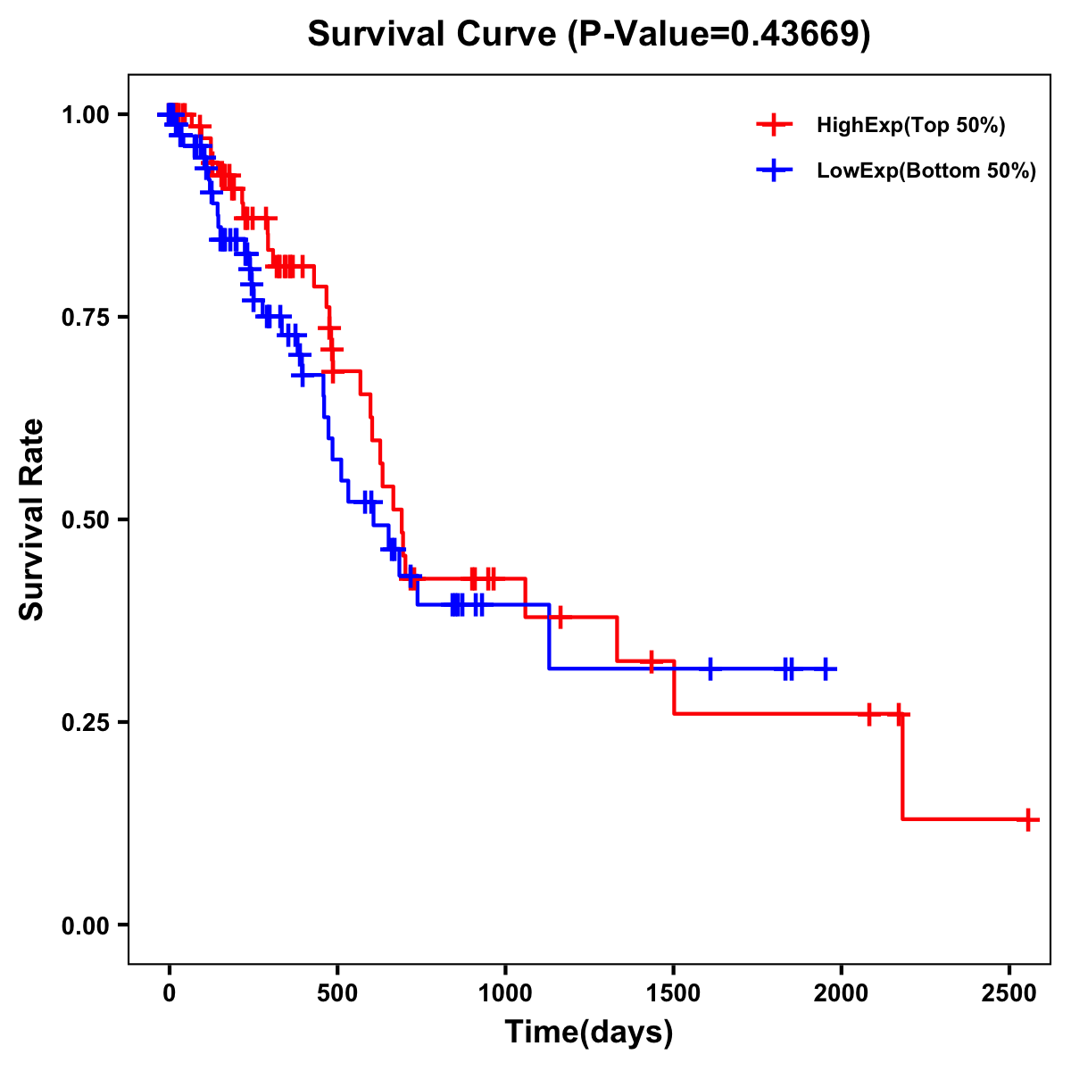 | Survival Curve of Pancreatic Cancer of Expression | Survival Curve of Pancreatic Cancer of Methylation | ||