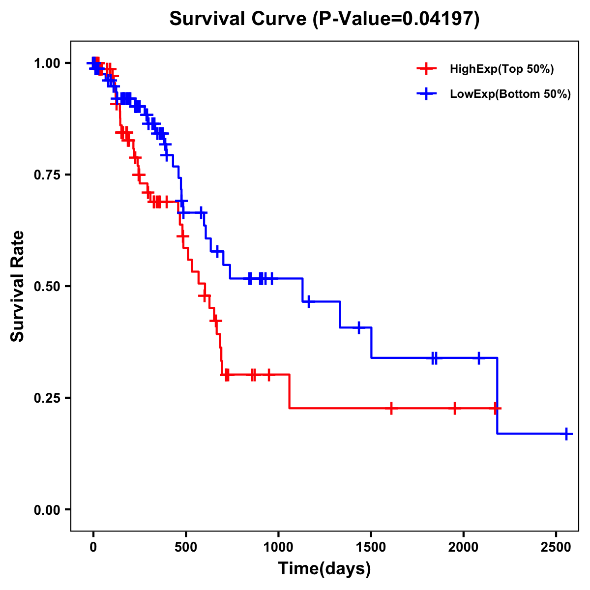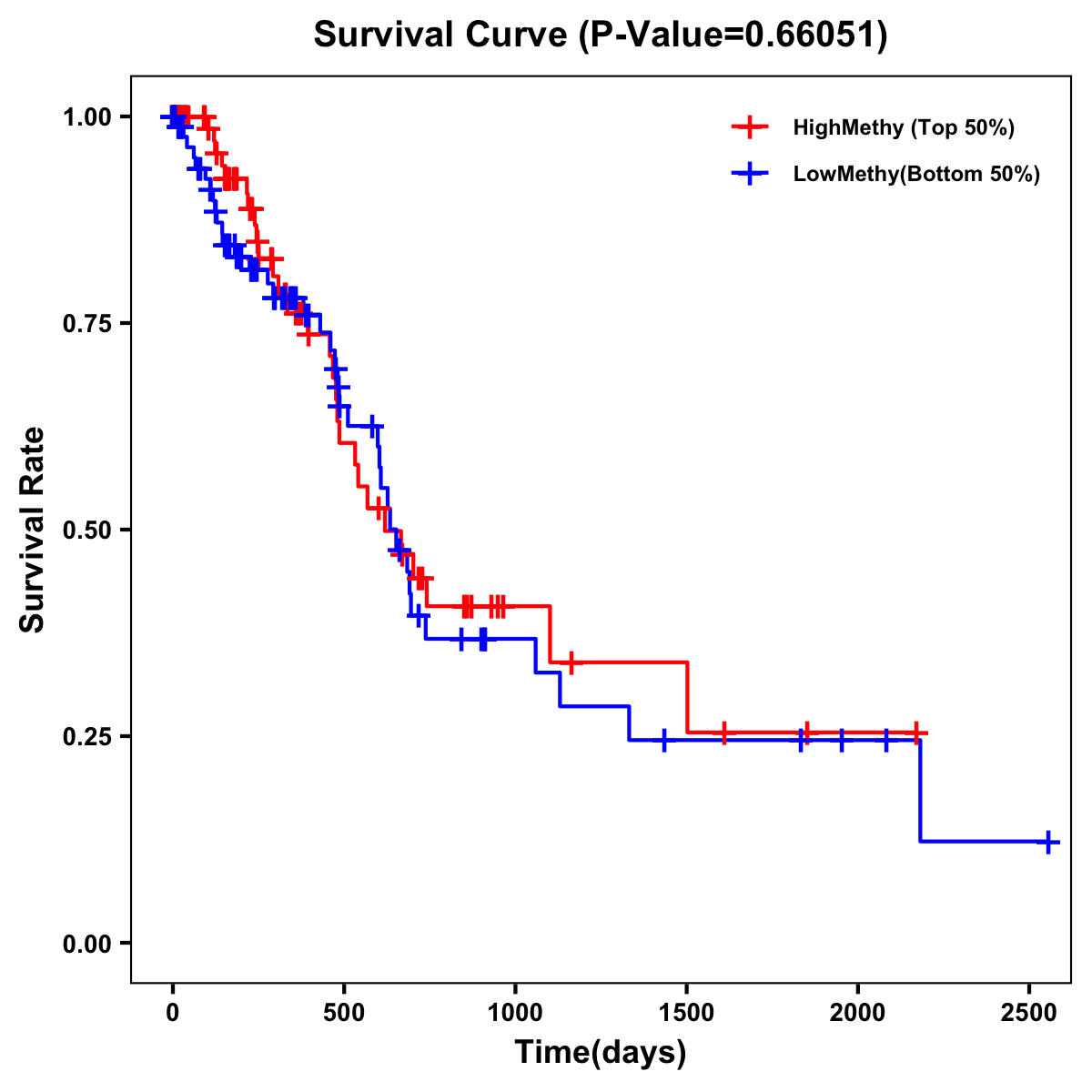 | Survival Curve of Pancreatic Cancer of Expression | Survival Curve of Pancreatic Cancer of Methylation | ||