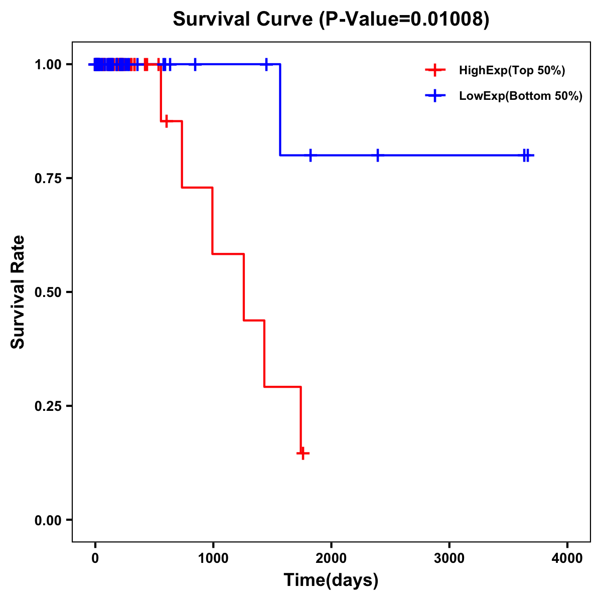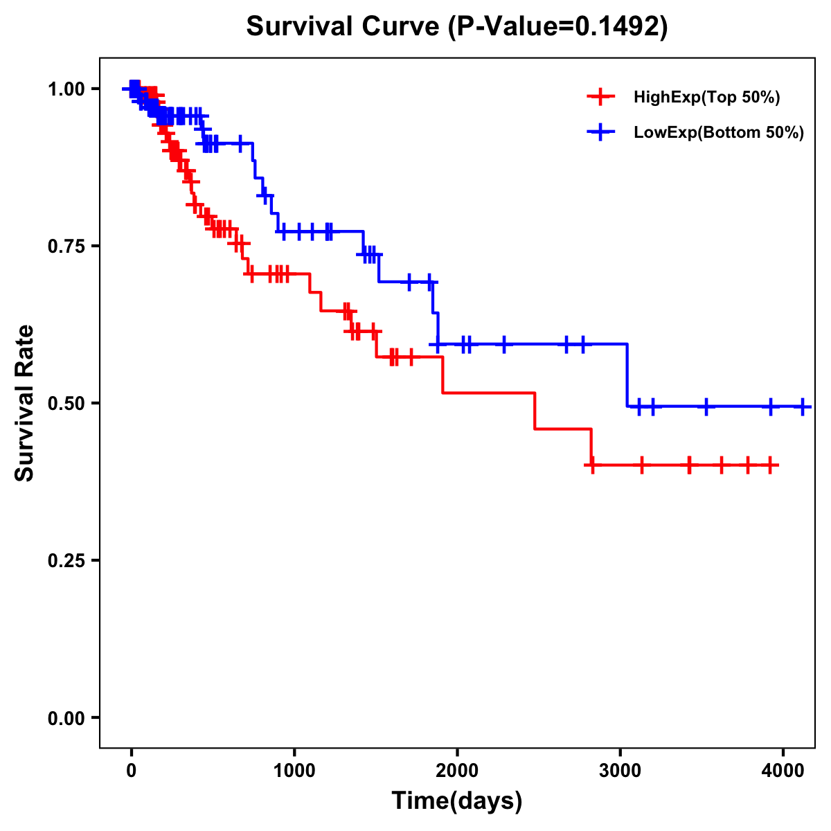 | Survival Curve of Colon Cancer on Expression Level |