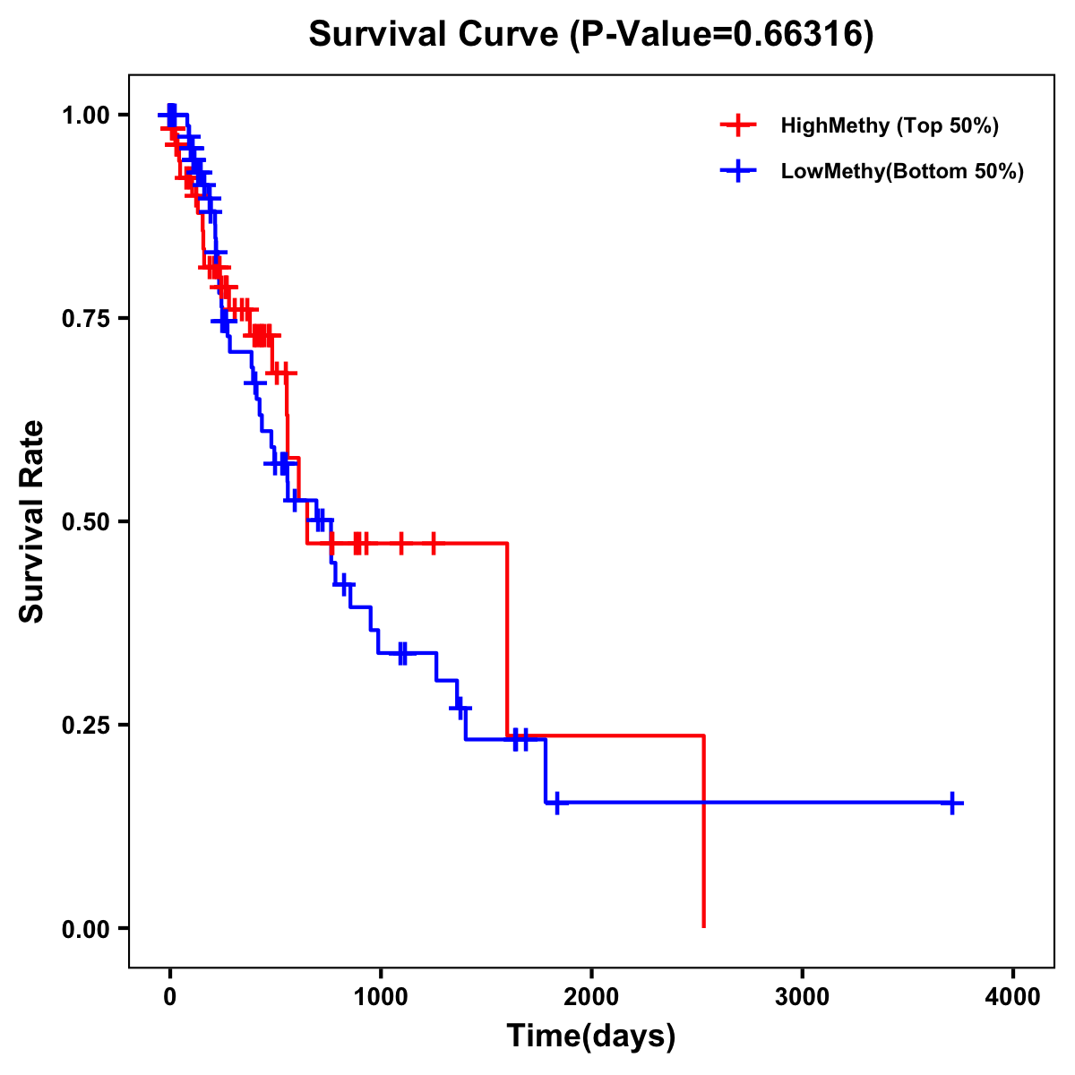| Survival Curve of Esophagus Cancer of Expression | Survival Curve of Esophagus Cancer of Methylation | ||