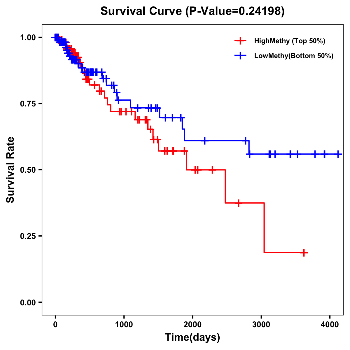 | Survival Curve of Colon Cancer on Methylation Level |