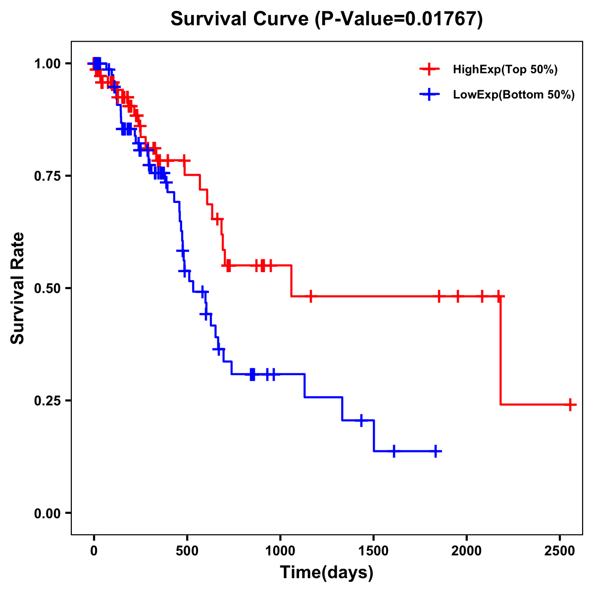 | Survival Curve of Pancreatic Cancer of Expression | Survival Curve of Pancreatic Cancer of Methylation | ||