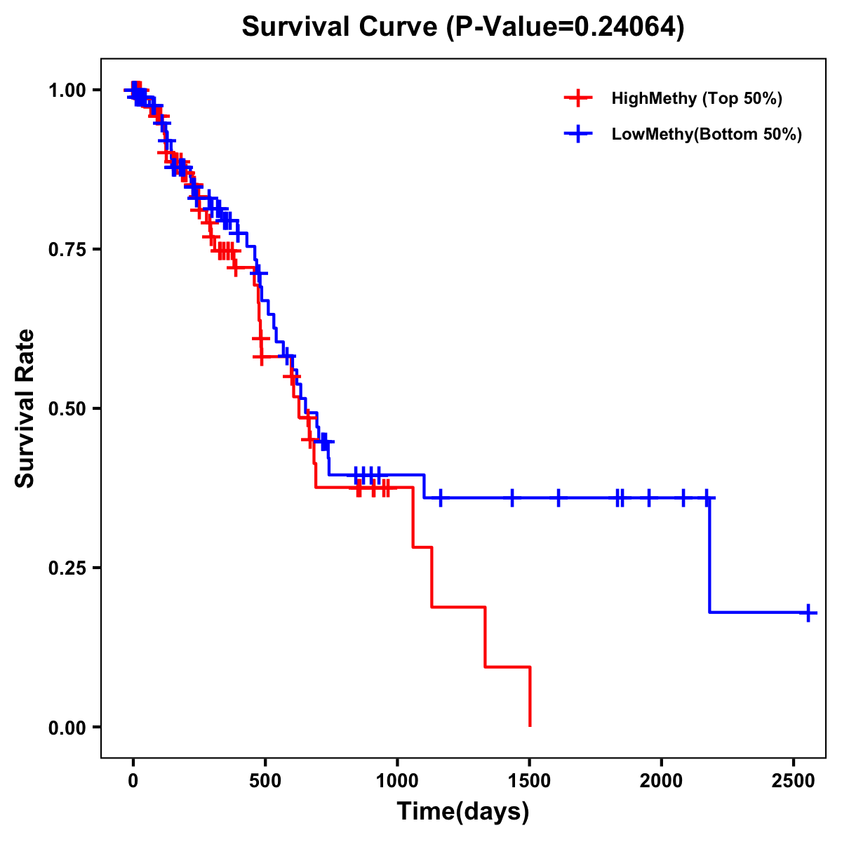 | Survival Curve of Pancreatic Cancer of Expression | Survival Curve of Pancreatic Cancer of Methylation | ||