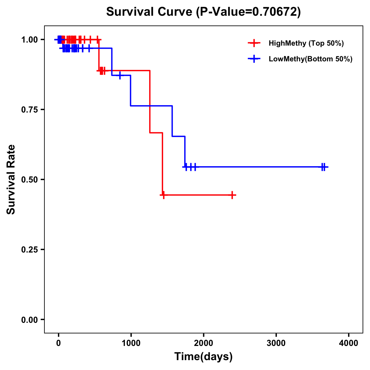 | Survival Curve of Colon Cancer on Methylation Level |