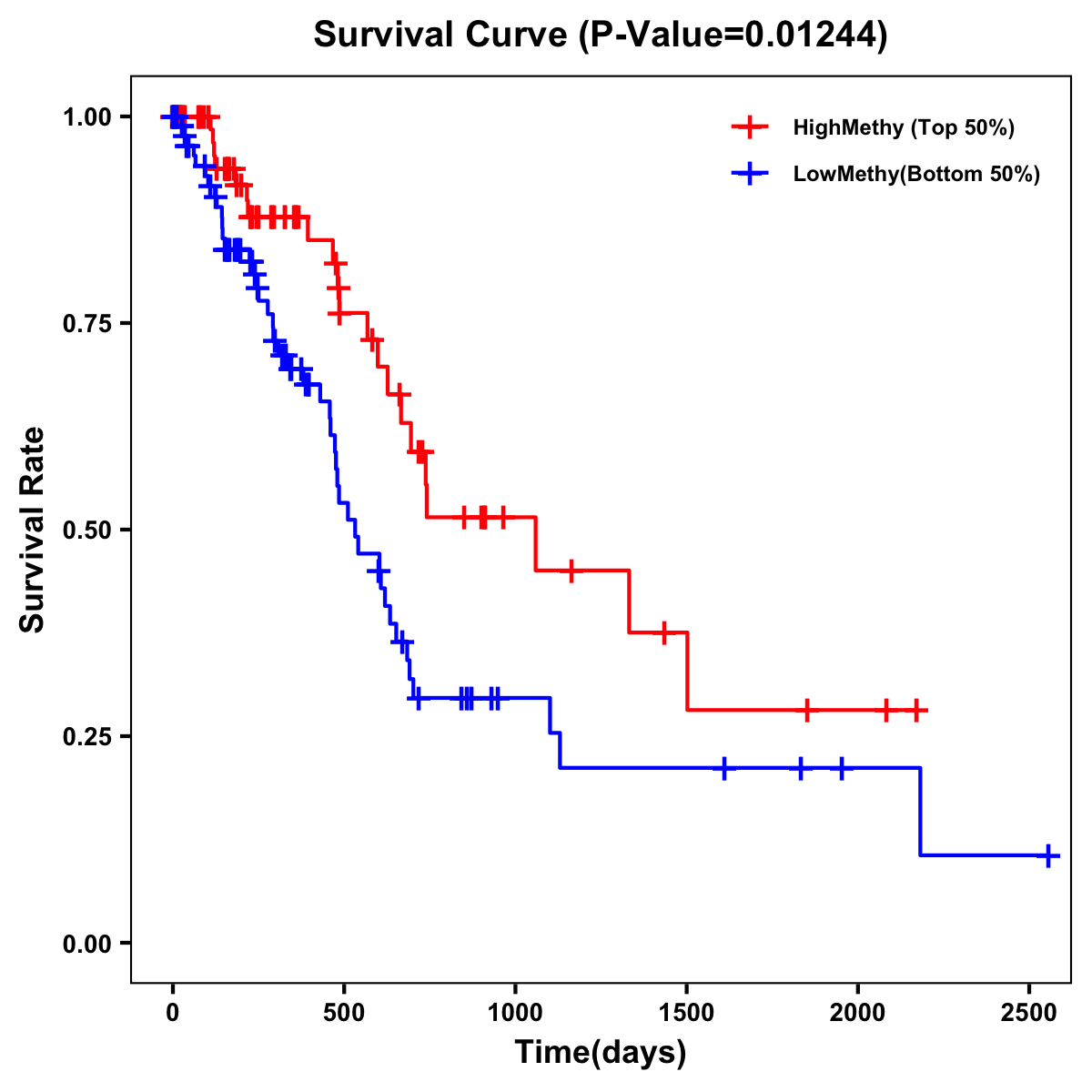 | Survival Curve of Pancreatic Cancer of Expression | Survival Curve of Pancreatic Cancer of Methylation | ||
