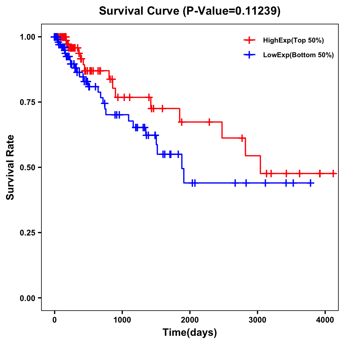 | Survival Curve of Colon Cancer on Expression Level |