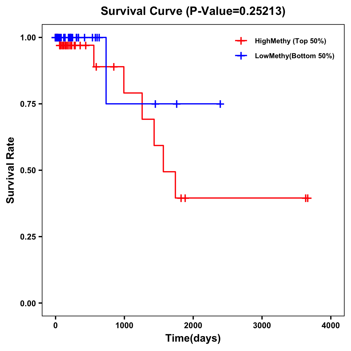 | Survival Curve of Colon Cancer on Methylation Level |
