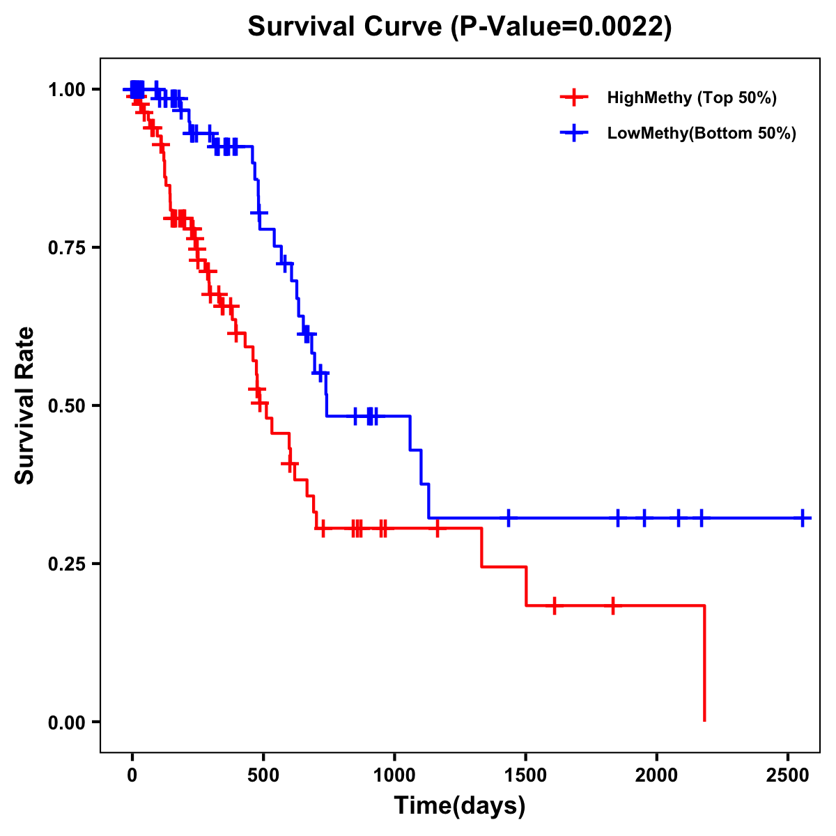 | Survival Curve of Pancreatic Cancer of Expression | Survival Curve of Pancreatic Cancer of Methylation | ||
