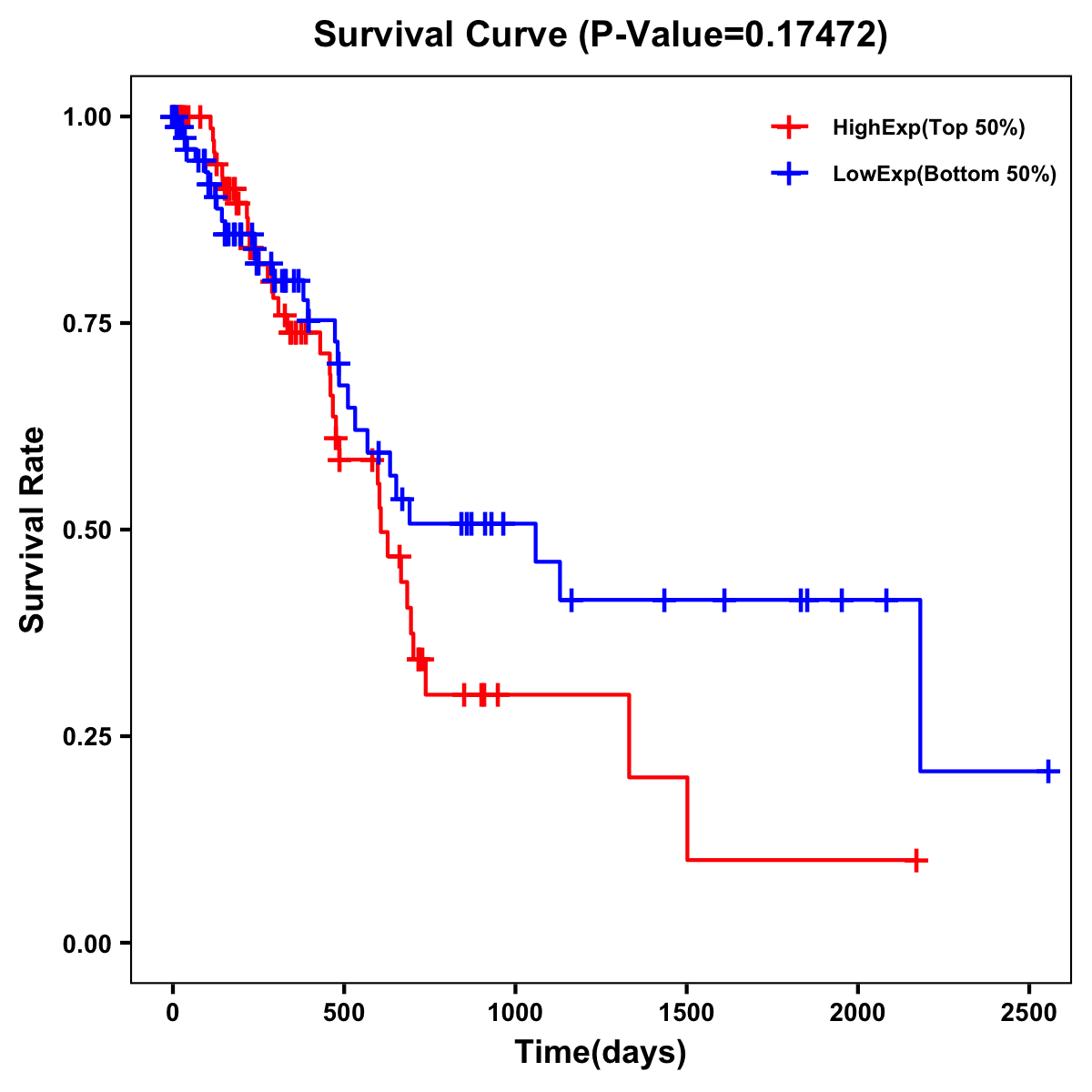 | Survival Curve of Pancreatic Cancer of Expression | Survival Curve of Pancreatic Cancer of Methylation | ||