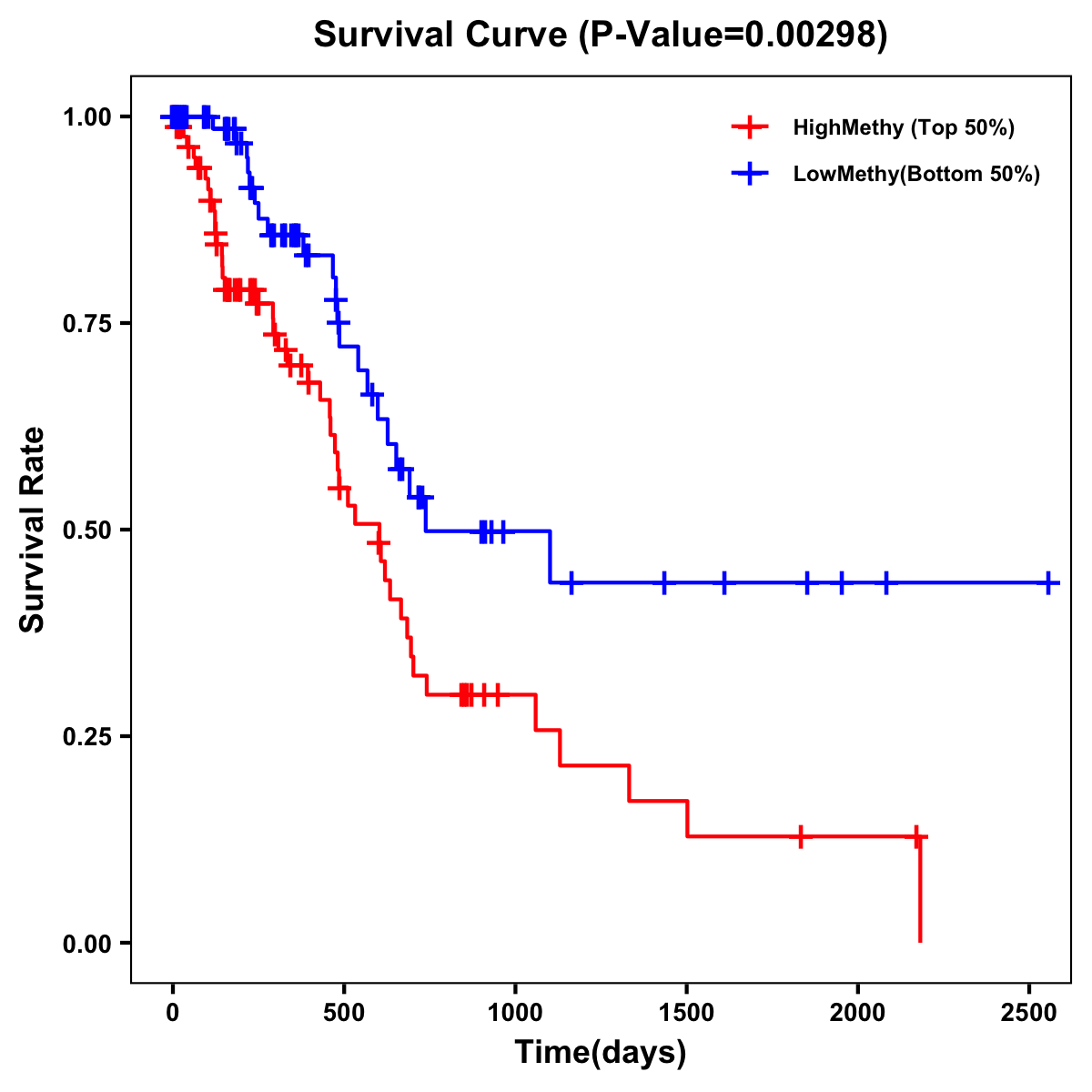 | Survival Curve of Pancreatic Cancer of Expression | Survival Curve of Pancreatic Cancer of Methylation | ||