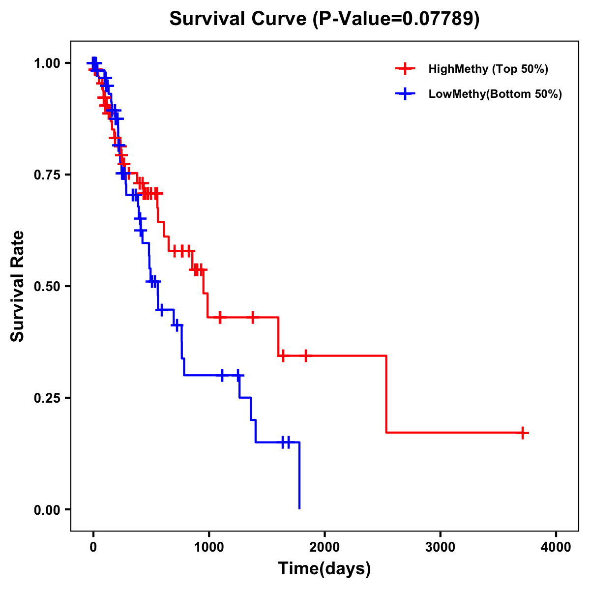 | Survival Curve of Esophagus Cancer of Expression | Survival Curve of Esophagus Cancer of Methylation | ||