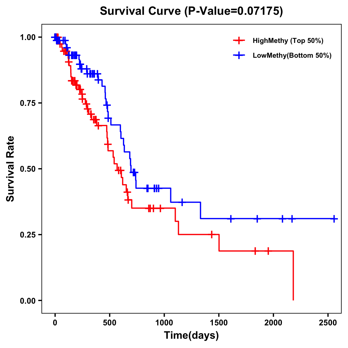 | Survival Curve of Pancreatic Cancer of Expression | Survival Curve of Pancreatic Cancer of Methylation | ||