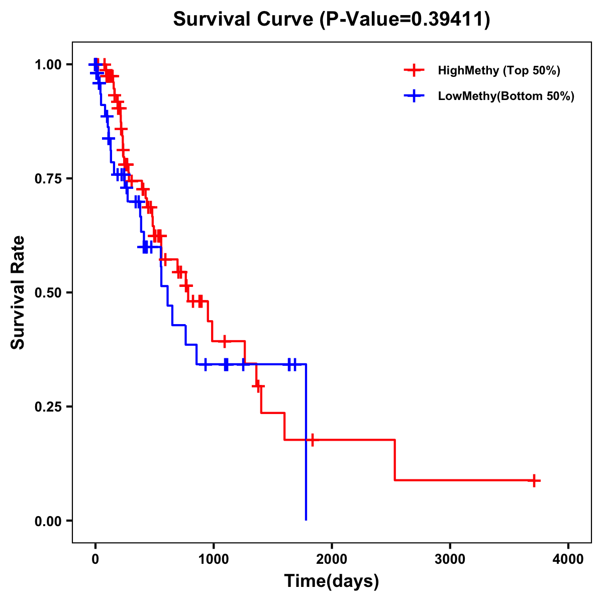 | Survival Curve of Esophagus Cancer of Expression | Survival Curve of Esophagus Cancer of Methylation | ||