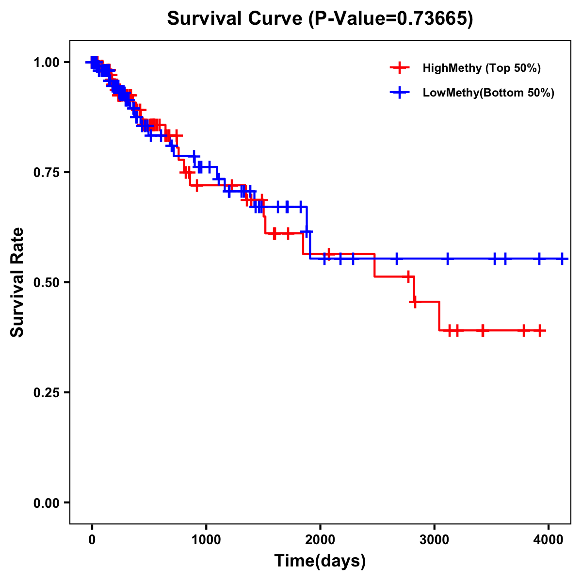 | Survival Curve of Colon Cancer on Methylation Level |