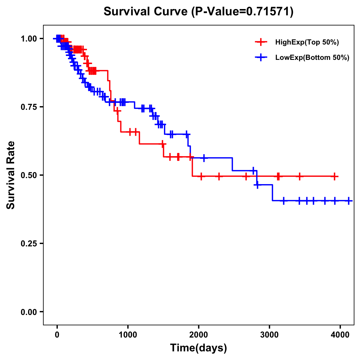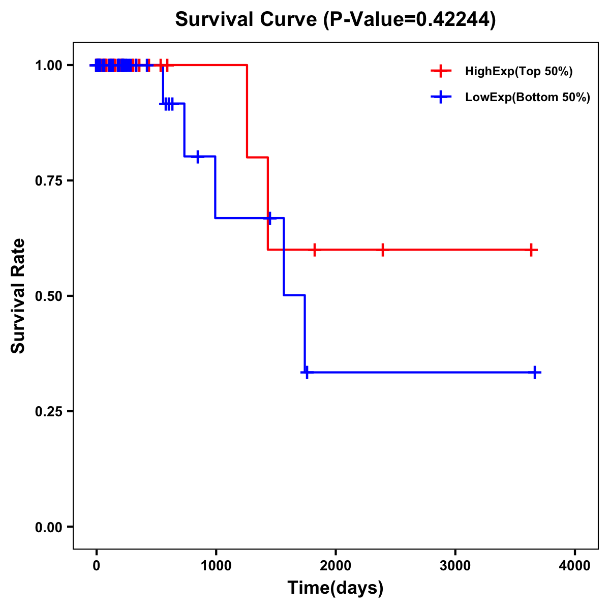 | Survival Curve of Colon Cancer on Expression Level |
