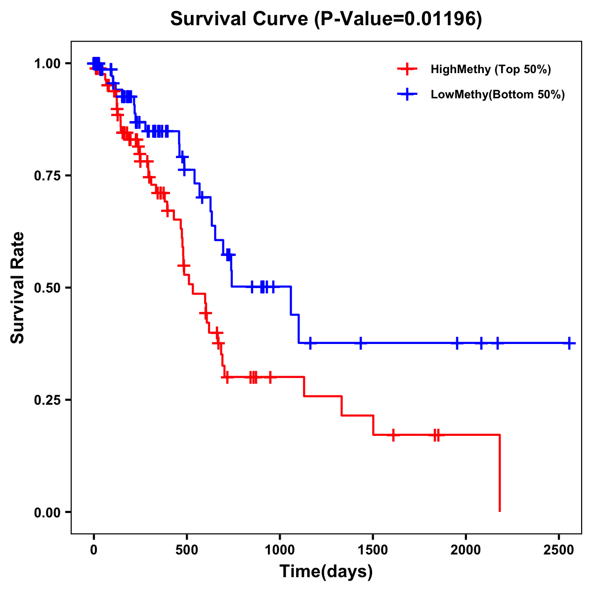 | Survival Curve of Pancreatic Cancer of Expression | Survival Curve of Pancreatic Cancer of Methylation | ||