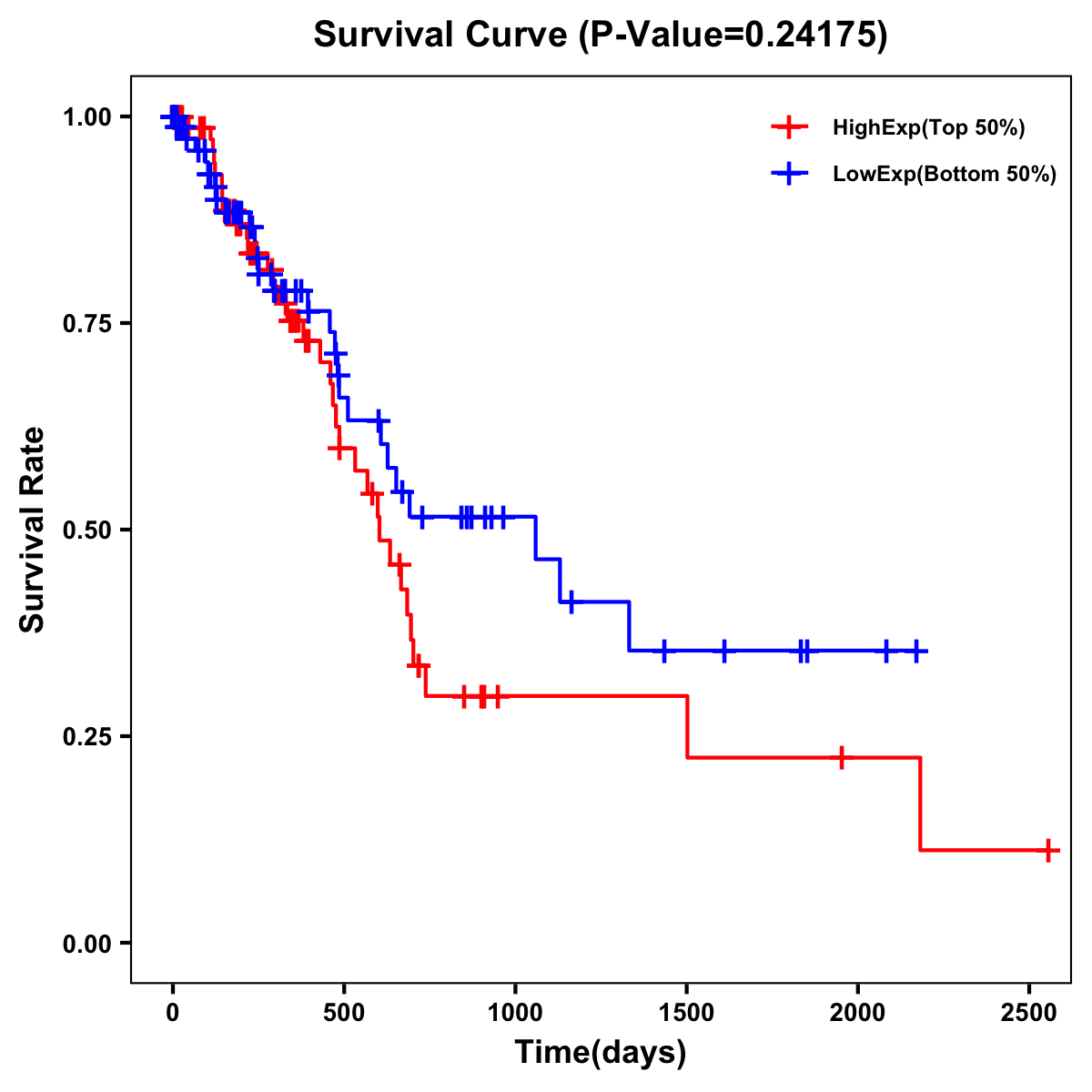 | Survival Curve of Pancreatic Cancer of Expression | Survival Curve of Pancreatic Cancer of Methylation | ||