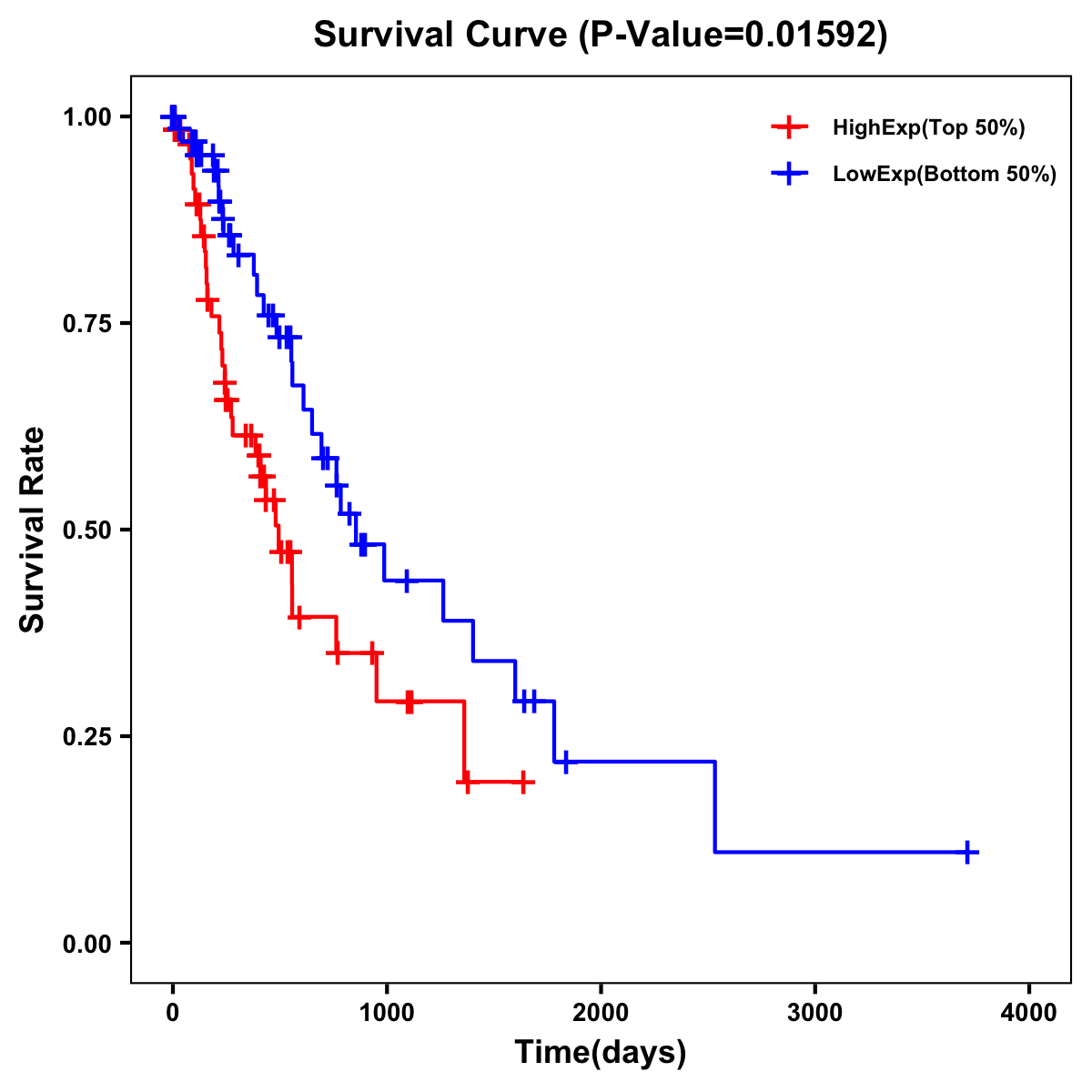 | Survival Curve of Esophagus Cancer of Expression | Survival Curve of Esophagus Cancer of Methylation | ||