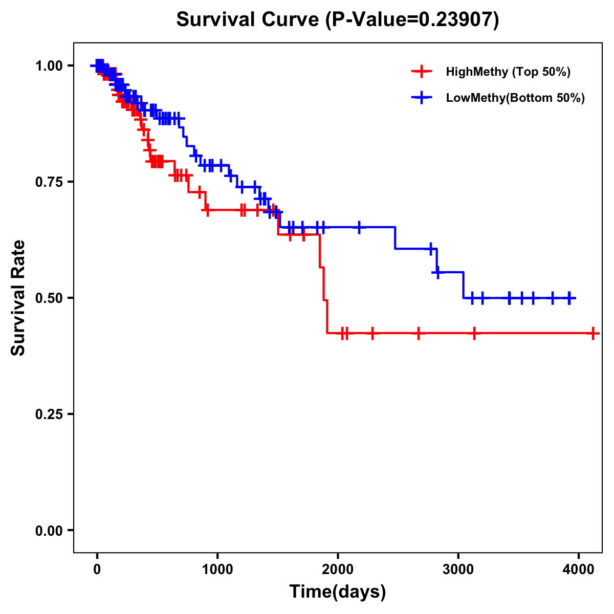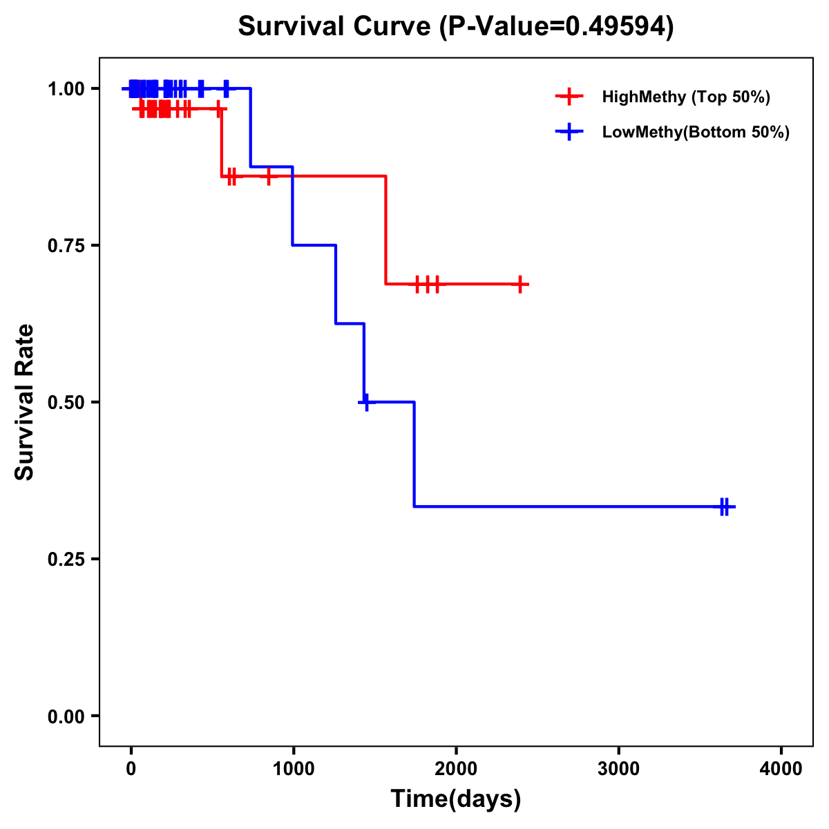 | Survival Curve of Colon Cancer on Methylation Level |