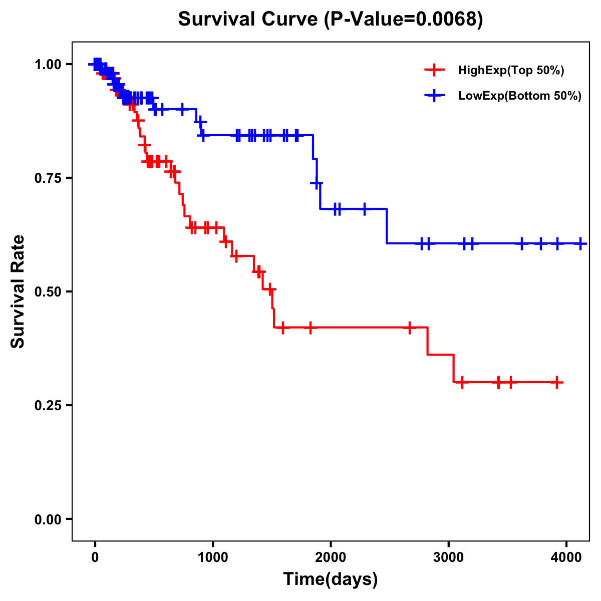 Survival Curve of Rectum Cancer on Expression Level |