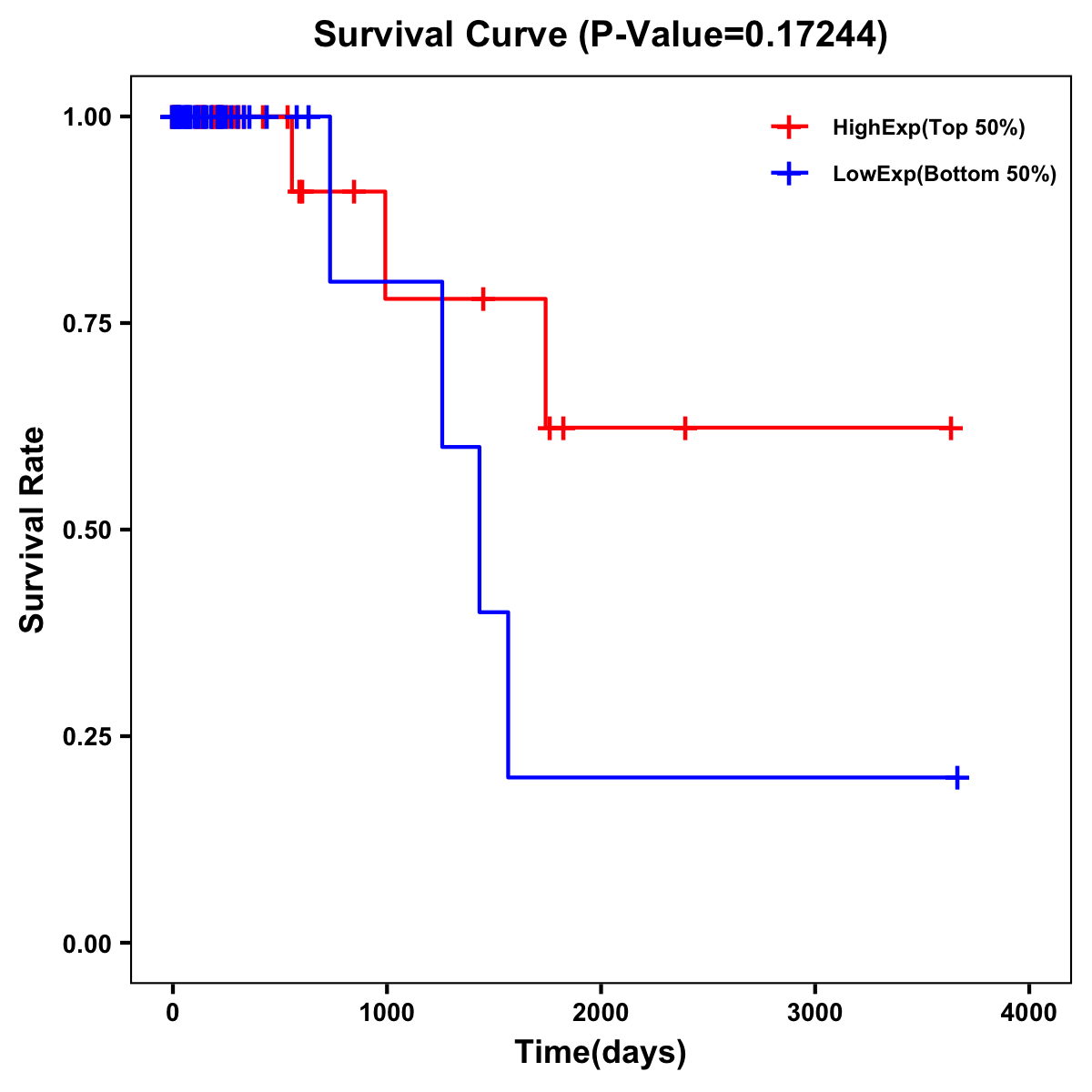 | Survival Curve of Colon Cancer on Expression Level |