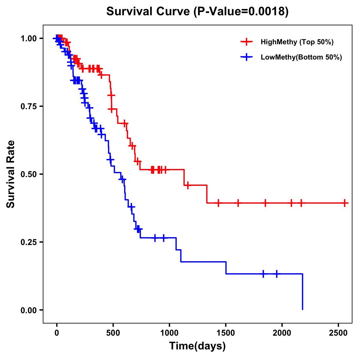 | Survival Curve of Pancreatic Cancer of Expression | Survival Curve of Pancreatic Cancer of Methylation | ||