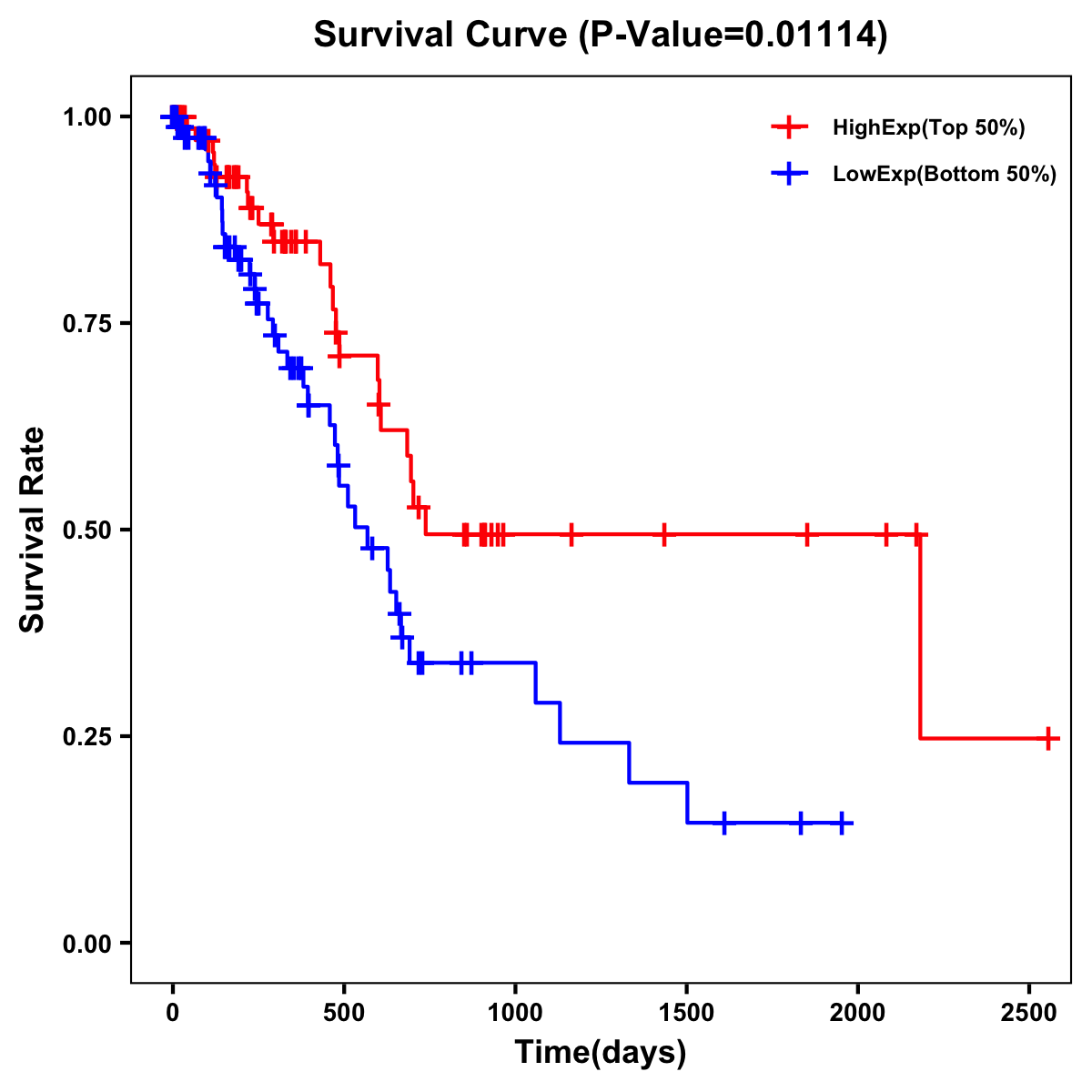 | Survival Curve of Pancreatic Cancer of Expression | Survival Curve of Pancreatic Cancer of Methylation | ||