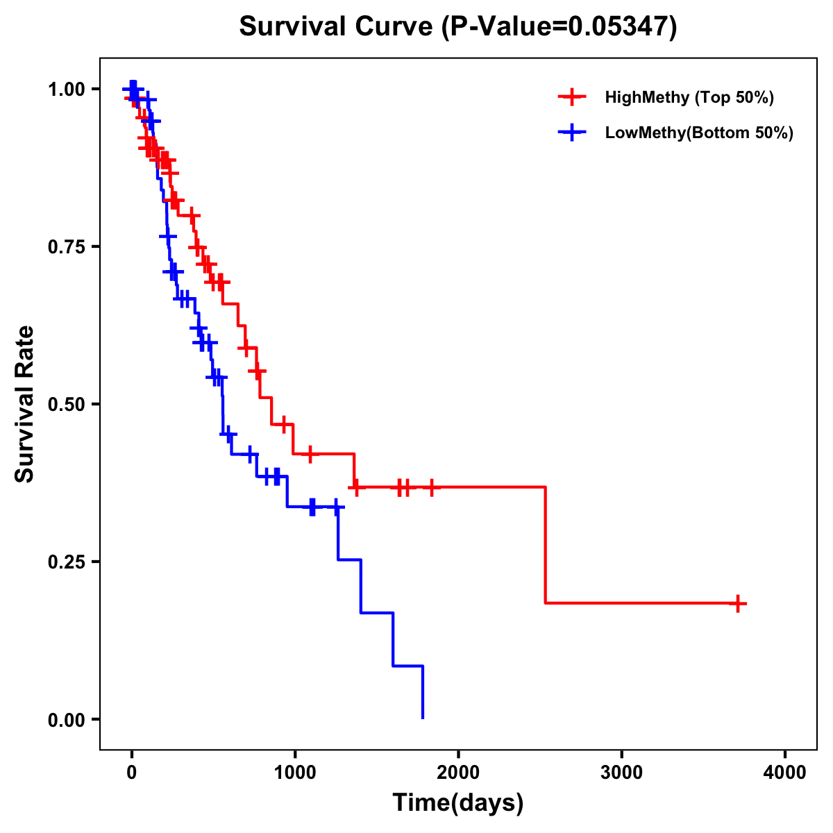 | Survival Curve of Esophagus Cancer of Expression | Survival Curve of Esophagus Cancer of Methylation | ||